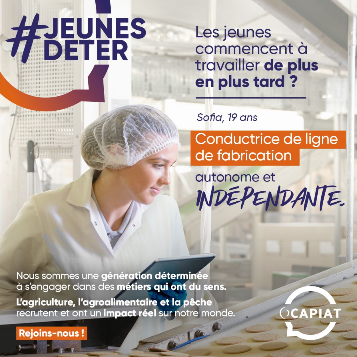 La campagne soutenue par le slogan #jeunesdeter (deter pour “déterminés”) vise à mettre en avant une jeunesse qui s’implique dans le sens qu’elle donne à son travail, une jeunesse qui a des projets et de l’ambition. Cette campagne multicanale s’appuie sur différents supports : réseaux sociaux, campagne TV, affichage, et enfin un site dédié : https://www.ocapiat.fr/jeunes-deter/