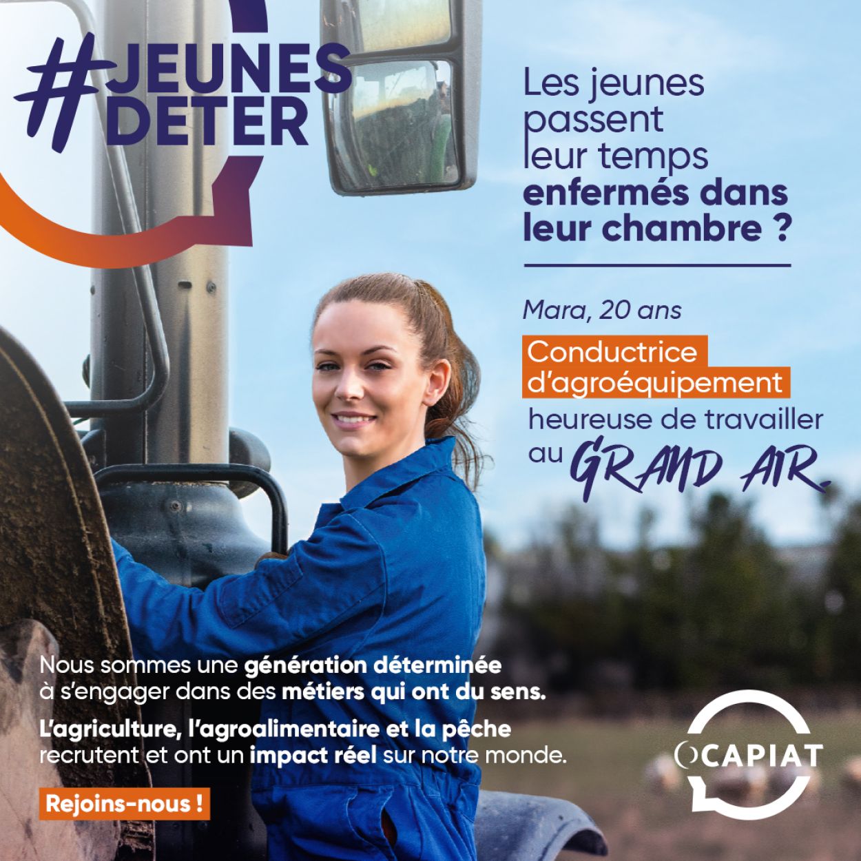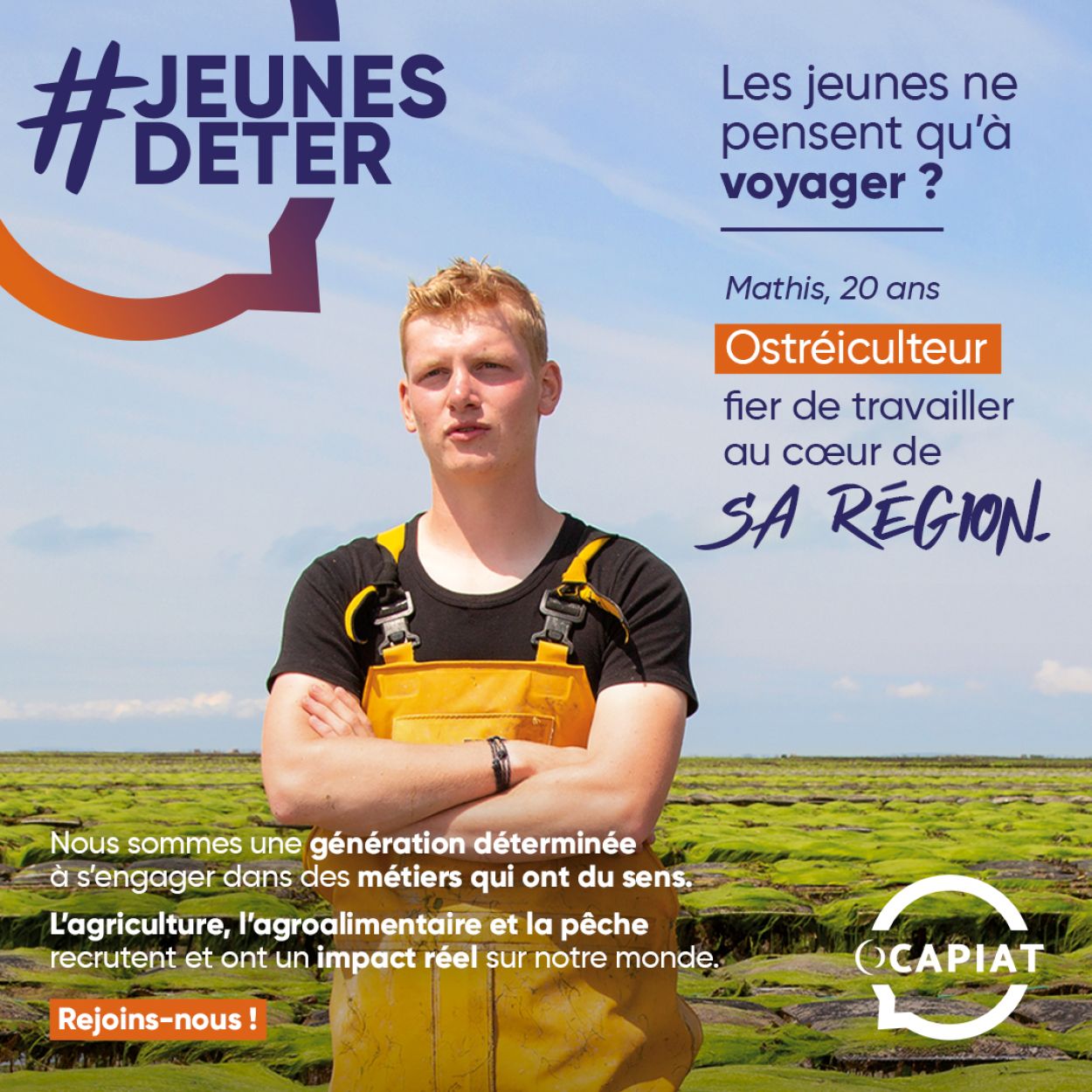 La campagne #JeunesDeter, lancée par OCAPIAT en avril 2024, vise à attirer les jeunes (13 – 24 ans) vers les secteurs en tension de l’agriculture, de l’agroalimentaire, de la pêche et des cultures marines.