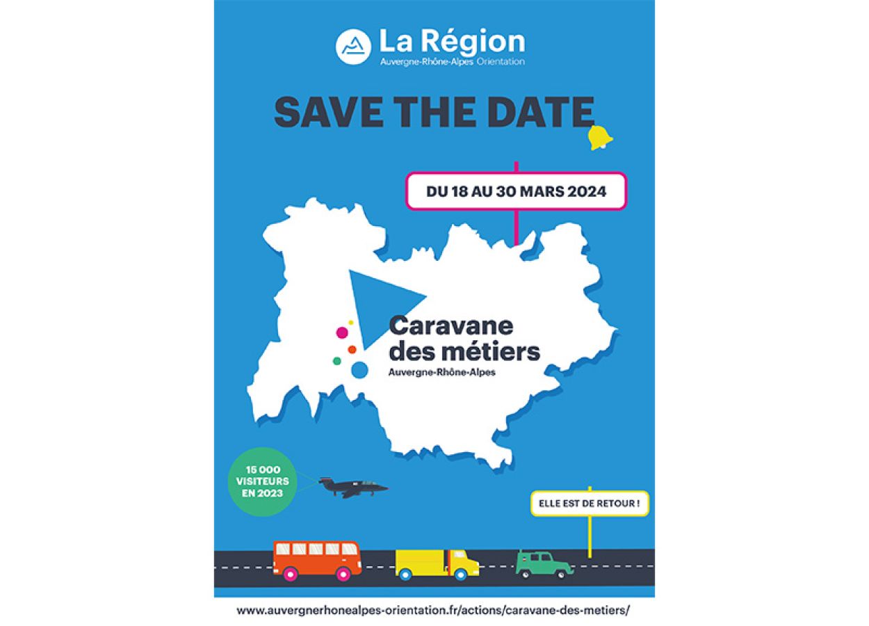 La Caravane des Métiers vise à mutualiser les moyens d’information mobiles (bus, véhicule pédagogique) des acteurs professionnels travaillant à la promotion des métiers et des formations. C’est une nouvelle façon d’accéder à l’information sur les métiers, les secteurs d’activité et les formations en Auvergne-Rhône-Alpes. La dimension «démonstrations métiers» est primordiale avec la mobilisation de l’écosystème local (mondes éducatif et économique). Chaque année, sur deux semaines, une quinzaine de véhicules et solutions mobiles d’exposition sillonnent la région et font étape dans une ville par département en veillant à couvrir de façon équitable le territoire. Chaque jour, ils s’installent au cœur des villes et accueillent tous les publics. Les deux premières éditions ont accueilli 30 000 visiteurs et la satisfaction partagée des publics, des exposants et des villes accueillantes.